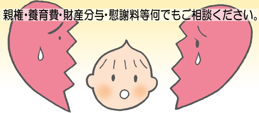 離婚を請求される側では、離婚自体は認めても、財産分与・慰謝料・子供の養育料について、協議が整わない場合に限ります。特に女性の場合、離婚によって経済的に苦しい立場に追い込まれる例が大変多いので、財産分与・養育料等の支払を確実に確保する必要があり、そのお手伝いを致します。